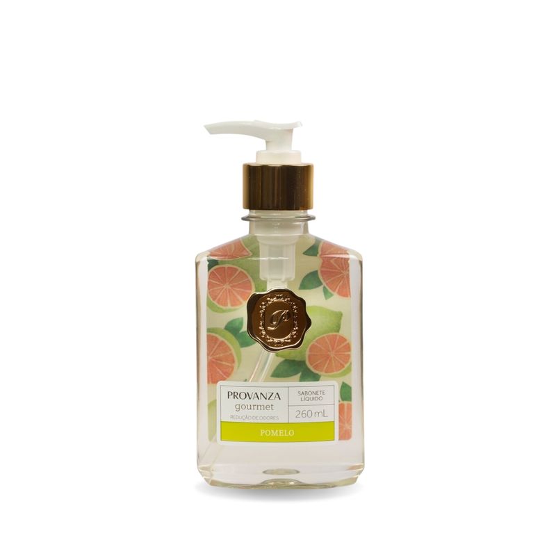 O Sabonete Líquido Pomelo foi formulado para reduzir odores desagradáveis derivados de alguns condimentos e alimentos tais como: cebola, alho, peixe, carne, frutas e outros. Sua função redutora de odores é obtida através da lavagem das mãos, esfregando-as com o sabonete líquido. Caso o odor seja muito ativo, repetir a operação. Este produto possui embalagem PET, pois sendo a cozinha/área gourmet de grande circulação e com maior risco de queda acidental, o PET é uma opção mais segura.